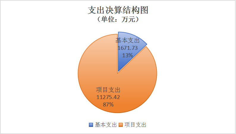 2024年本年支出合计12947.14万元,其中:基本支出1671.73万元,占12.19%;项目支出11275.42万元,占87.81%;上缴上级支出0万元,占0%;经营支出0万元,占0%;对附属单位补助支出0万元,占0%。