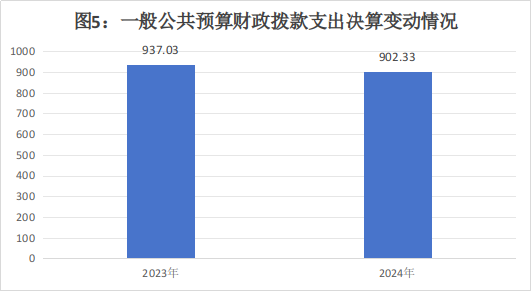 2024年度一般公共预算支出决算数为902.33万元,完成预算94.39%。其中: