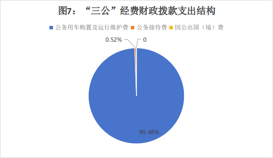 2024年度“三公”经费财政拨款支出决算中,因公出国(境)费支出决算0万元,占0%;公务用车购置及运行维护费支出决算7.68万元,占99.48%;公务接待费支出决算0.04万元,占0.52%。具体情况如下: