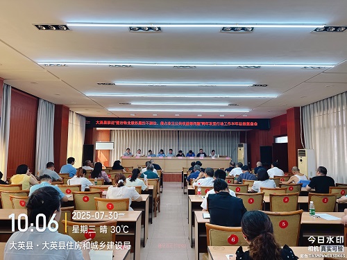 2025年7月30日,大英县推进“整治物业服务履约不到位、侵占业主公共收益等问题”两年攻坚行动工作半年总结复盘会在县住房城乡建设局五楼会议室召开。会议总结复盘工作开展情况,研究部署下步工作。县住房城乡建设局党组成员、县住房保障中心主任许明森同志主持会议并讲话。