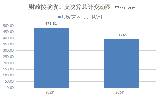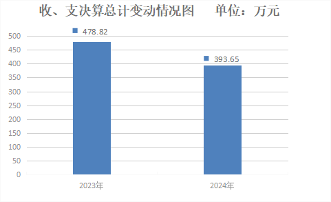 2024年度收、支总计均为393.65万元。与2023年度相比,收、支总计各减少85.17万元,下降21.64%。主要变动原因是追加项目经费。