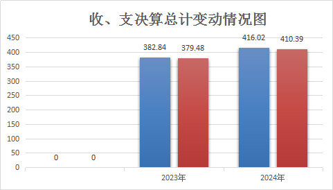 2024年度收、支总计均为416.02万元、410.39万元。与2023年度收、支382.84万元、379.48万元相比,收、支总计各增加33.18万元、30.91万元,收、支增长8.67%、8.15%。主要变动原因是教师薪资正常增加、增加项目工程款。