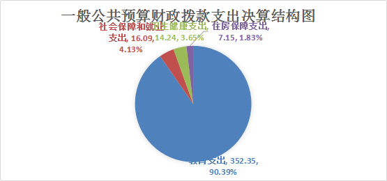 2024年度一般公共预算财政拨款支出389.83万元,主要用于以下方面: 教育支出352.35万元,占90.39%;社会保障和就业支出16.09万元,占4.13%;卫生健康支出14.24万元,占3.65%;住房保障支出7.15万元,占1.83%。