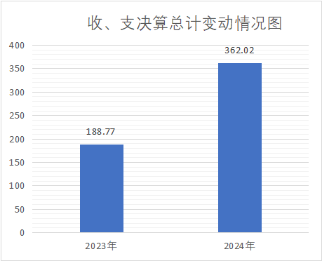 2024年度收、支总计均为362.02万元。与2023年度相比,收、支总计各增加173.25万元,增加91.78%。主要变动原因是本幼儿园生源增加。