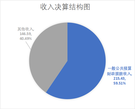2024年度本年收入合计362.02万元,其中:一般公共预算财政拨款收入215.43万元,占79.69%;政府性基金预算财政拨款收入0万元,占0%;国有资本经营预算财政拨款收入0万元,占0%;上级补助收入0万元,占0%;事业收入0万元,占0%;经营收入0万元,占0%;附属单位上缴收入0万元,占0%;其他收入146.59万元,占40.49%。