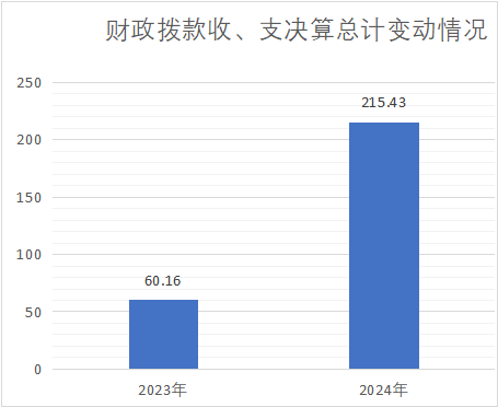 2024年度财政拨款收、支总计均为215.43万元。与2023年度相比,财政拨款收、支总计各增加155.27万元,增长258.1%。主要变动原因是本幼儿园支付采购款等。