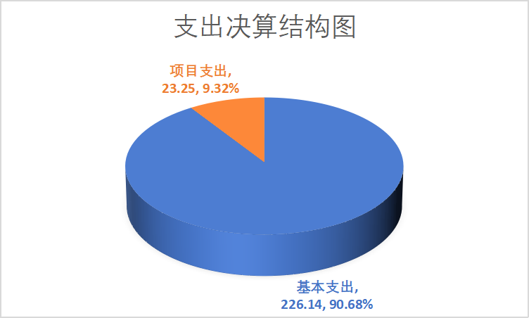 2024年度本年支出合计249.85万元,其中:基本支出226.14万元,占90.68%;项目支出23.25万元,占9.32%;上缴上级支出0万元,占0%;经营支出0万元,占0%;对附属单位补助支出0万元,占0%。