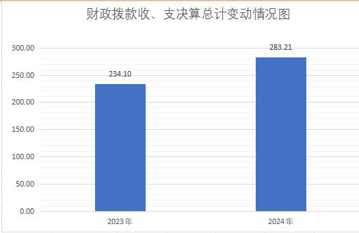 2024年财政拨款收、支总计283.21万元。与2023年234.1万元相比,财政拨款收、支总计增加49.11万元,上升17.34%。主要变动原因是学校新园建设财政拨款收、支总计增加。