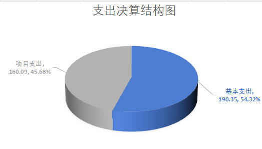 2024年本年支出合计350.44万元,其中:基本支出190.35万元,占54.32%;项目支出160.09万元,占45.68%。