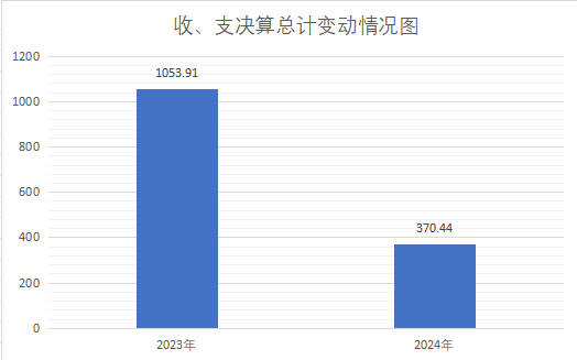 2024年度收、支总计370.44万元。与2023年1053.91万元相比,收、支总计各减少了683.47万元,下降了64.85%。主要变动原因是2023年有新园建设项目投入,收支减少。