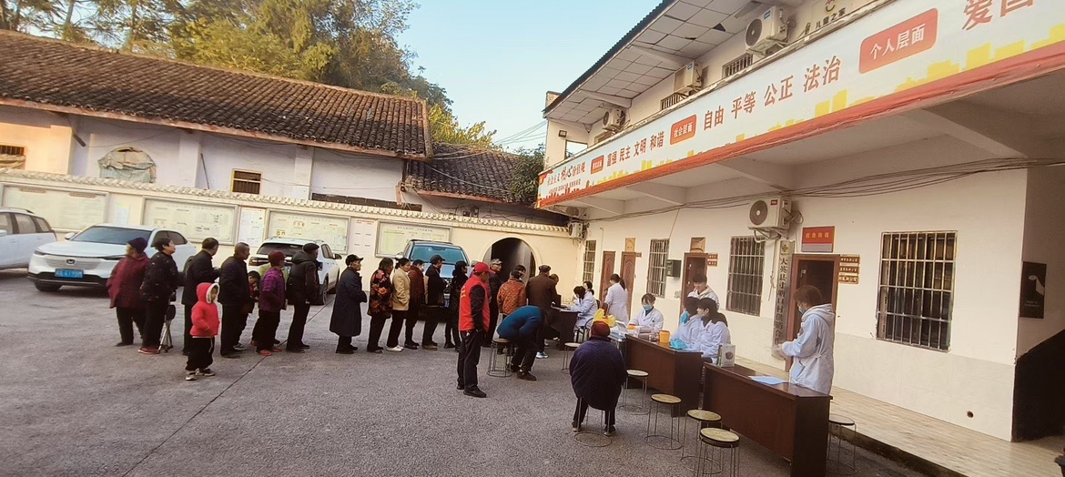 2024年11月30日,蓬莱镇寸塘口村以“社会共治、终结艾滋、共享健康”为主题,组织本辖区村民在寸塘口村办公室与寸塘口村第二卫生室开展全员HIV值预防筛查。