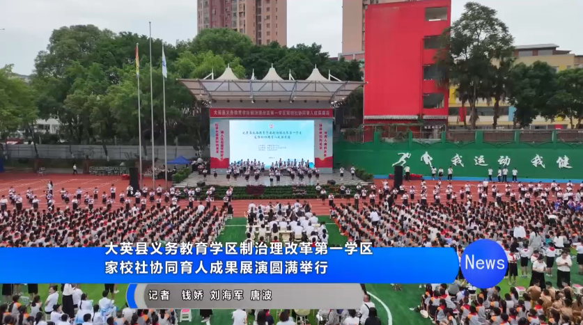 【大英县第一学区领衔学校、大英县实验学校党总支书记 熊高军:大英县义务教育学区制治理改革第一学区家校社协同育人成果展演是我们向关心学区建设、实验发展的所有人士递交的一份答卷,展演的内容涉及学生五育并举的成果,涉及家校社协同育人的成绩,涉及学区教育的共同成长。在今后的日子里,我们将继续发挥学校教育的主阵地作用,主动作为,奋力争先,服务大美大英建设,培养德智体美劳全面发展的新时代接班人。】
