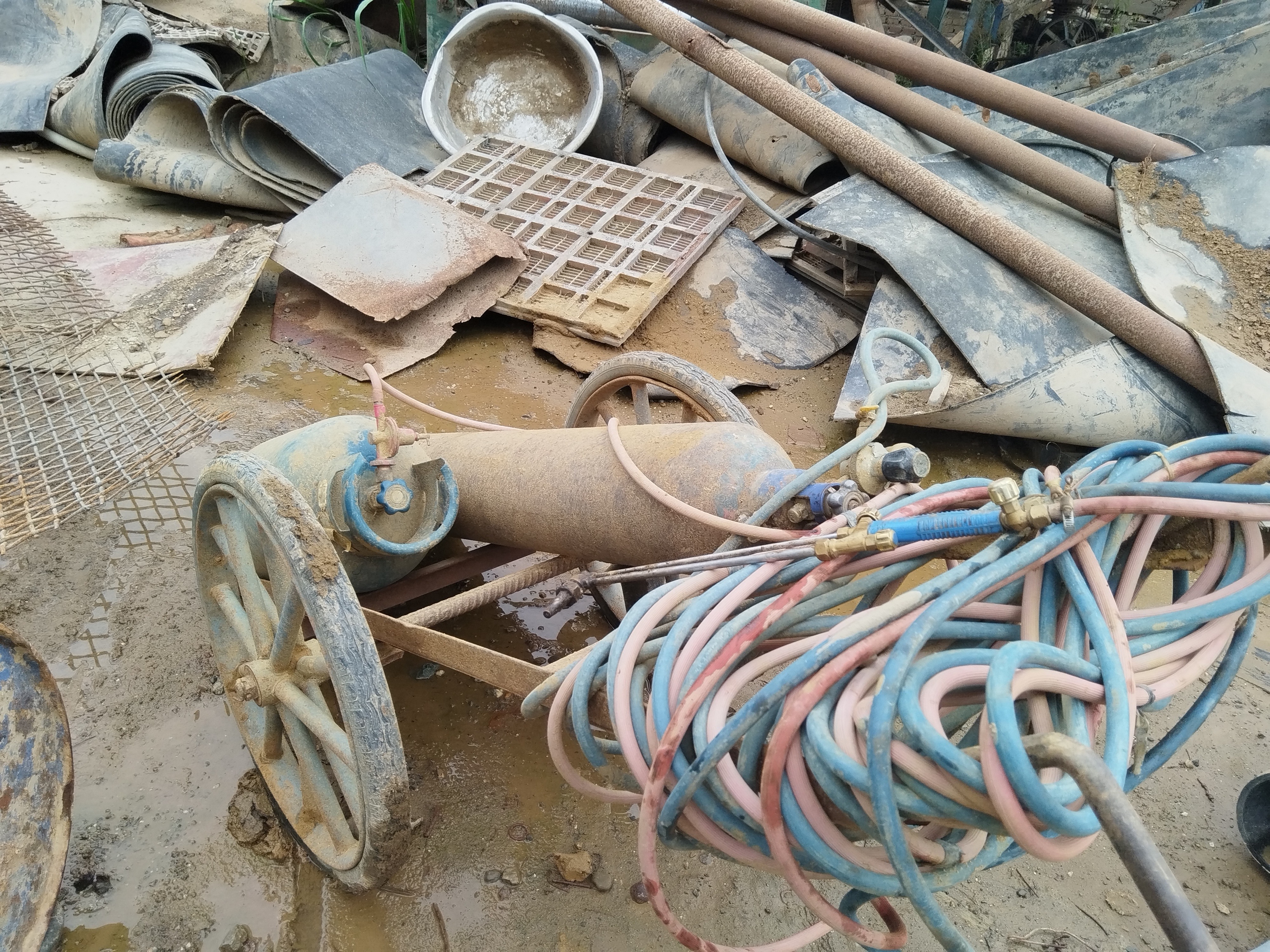 氧气瓶与液化气瓶摆放的安全间距不足。