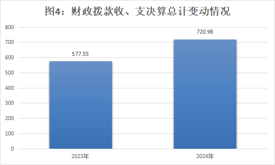2024年财政拨款收、支总计720.98万元。与2023年相比,财政拨款收、支总计各增加143.43万元,增长24.83%。主要变动原因是增加工资和项目资金增加。