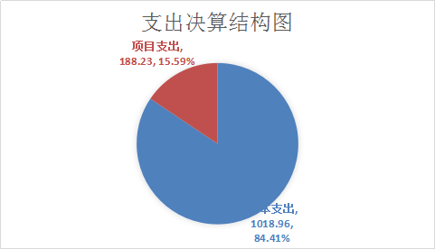 2024年度本年支出合计1207.19万元,其中:基本支出1018.96万元,占84.41%;项目支出188.23万元,占15.59%。