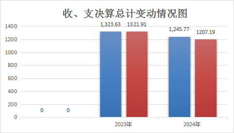 2024年度收、支总计为1245.77万元、1207.19万元。与2023年度收、支1323.63万元、1321.91万元相比,收、支总计各减少77.86万元、114.72万元,收、支下降5.88%、8.68%。主要变动原因是学生人数减少。
