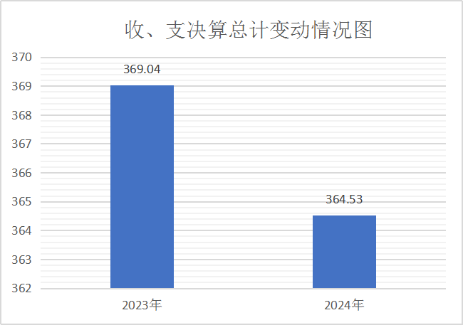 2024年度收、支总计364.53万元。与2023年369.04万元相比,收、支总计各减少4.51万元,下降1.22%。主要变动原因是本年度退休人员一次性补助收、支总计减少。