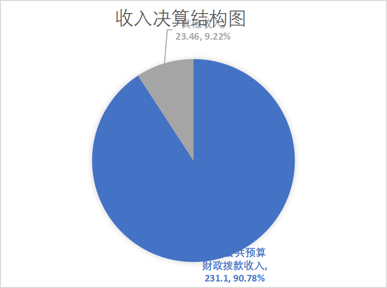 2024年度本年收入合计231.1万元,其中:一般公共预算财政拨款收入23.46万元,占90.78%;政府性基金预算财政拨款收入0万元,占0%;国有资本经营预算财政拨款收入0万元,占0%;上级补助收入0万元,占0%;事业收入0万元,占0%;经营收入0万元,占0%;附属单位上缴收入0万元,占0%;其他收入23.46万元,占9.22%