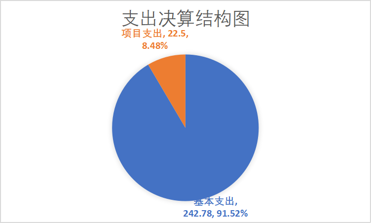 2024年度本年支出合计265.28万元,其中:基本支出242.78万元,占91.52%;项目支出22.5万元,占8.48%;上缴上级支出0万元,占0%;经营支出0万元,占0%;对附属单位补助支出0万元,占0%。