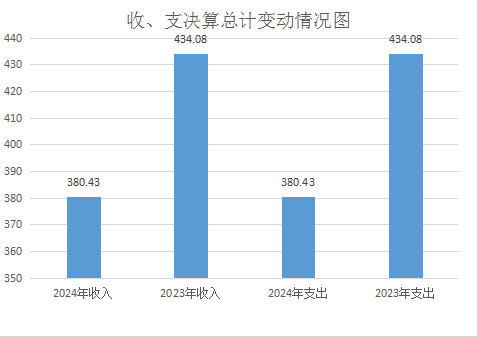 2024年度收入总计为380.43万元。与2023年434.08万元相比,减少53.65万元,下降12.36%。主要变动原因是2024年信访总量下降。