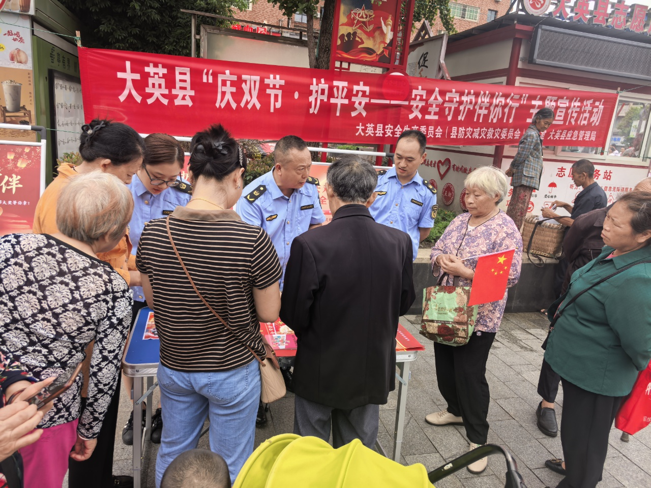 当国庆红遇上中秋金,大英县的平安守护模式已提前点亮!9月28日,朝阳广场的热闹、永逸广场的欢笑、大英东火车站的暖意,共同勾勒出“庆双节·护平安—安全守护伴你行”主题活动的鲜活图景。