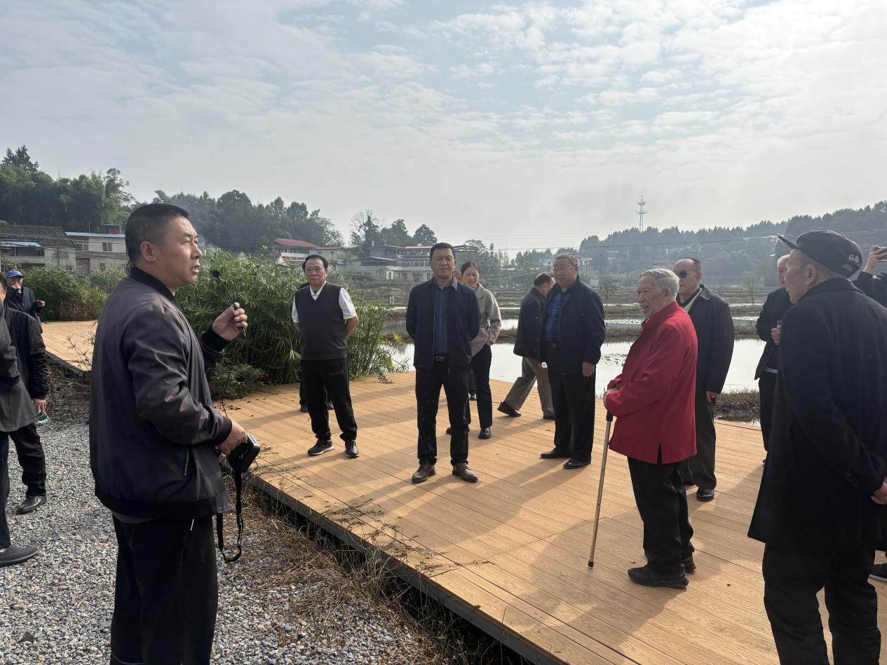 上午9时,老干部在镇院内集结,统一乘车先后前往新愚公粮食加工厂、寸塘口水库渡改桥现场、桅杆坝村共孵虾塘、四川三千廷食品有限公司,各点位负责人围绕建设进度、发展理念、民生效益作细致讲解。