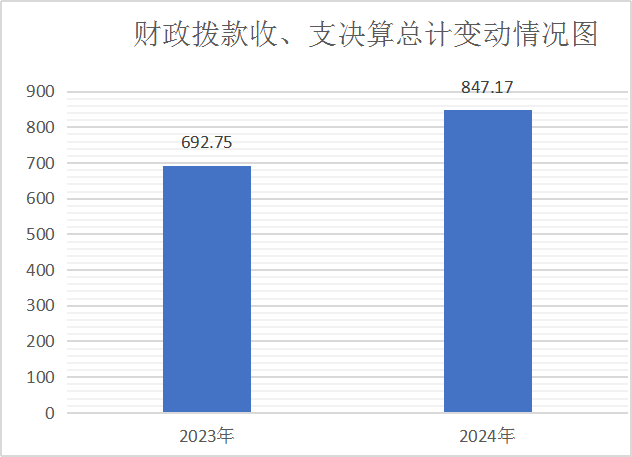 2024年财政拨款收、支总计847.17万元。与2023年692.75万元相比,财政拨款收、支总计各增加154.42万元,增加22.29%。主要变动原因本年度在职人员增加,工资增加。