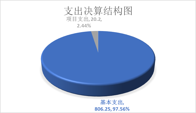 2024年本年支出合计826.45万元,其中:基本支出806.25万元,占 97.56 %;项目支出20.2万元,占2.44%。