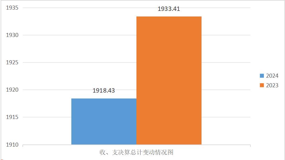 2024年度收、支总计均为1918.43万元。与2023年度相比,收、支总计各减少14.98万元,下降0.77%。