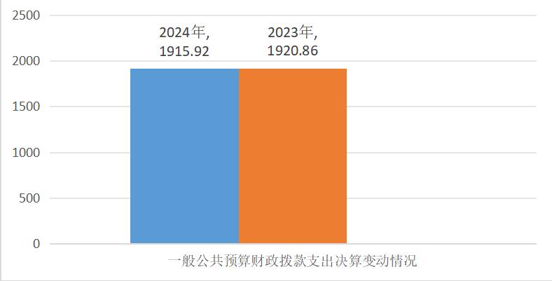 2024年度一般公共预算财政拨款支出1915.92万元,占本年支出合计的99.91%。与2023年度相比,一般公共预算财政拨款支出减少4.94万元,下降0.26%。