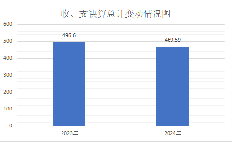 2024年度收、支总计均为469.59万元。与2023年度相比,收、支总计各减少27.01万元,下降5.44%。主要变动原因是师生人数减少。