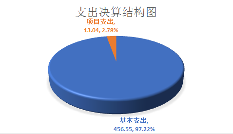 2024年度本年支出合计469.59万元,其中:基本支出456.55万元,占97.22%;项目支出13.04万元,占2.78%。