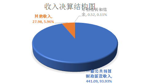 2024年度本年收入合计469.59万元,其中:一般公共预算财政拨款收入441.09万元,占93.93%;其他收入27.98万元,占5.96%。年初结转和结余0.52万元,占0.11%。