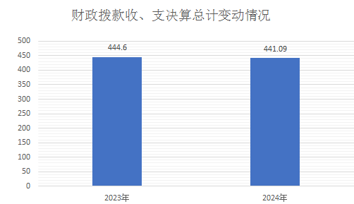 2024年度财政拨款收、支总计均为441.09万元。与2023年度相比,财政拨款收、支总计各减少3.51万元,下降0.79%。主要变动原因是师生人数减少。