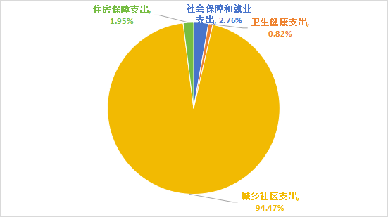 2024年度一般公共预算财政拨款支出6260.81万元,主要用于以下方面:社会保障和就业支出173.29万元,占2.76%;卫生健康支出51.07万元,占0.82%;城乡社区支出5914.38万元,占94.47%;住房保障支出122.07万元,占1.95%。