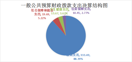 2024年度一般公共预算财政拨款支出377.3万元,主要用于以下方面:教育支出333.49万元,占88.39%;社会保障和就业支出19.69万元,占5.22%;卫生健康支出13.67万元,占3.62%;住房保障支出10.45万元,占2.77%。
