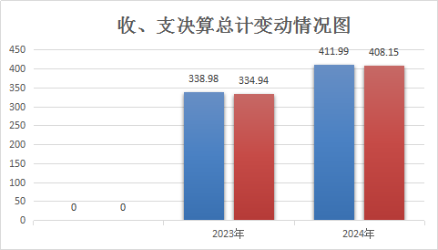 2024年度收、支总计为411.99万元、408.15万元。与2023年度收、支总计为338.98万元、334.94万元相比,收、支总计各增加73.01万元、73.21万元,收、支增长21.54%、21.86%。主要变动原因是工资调标、预兑付质量提升奖。