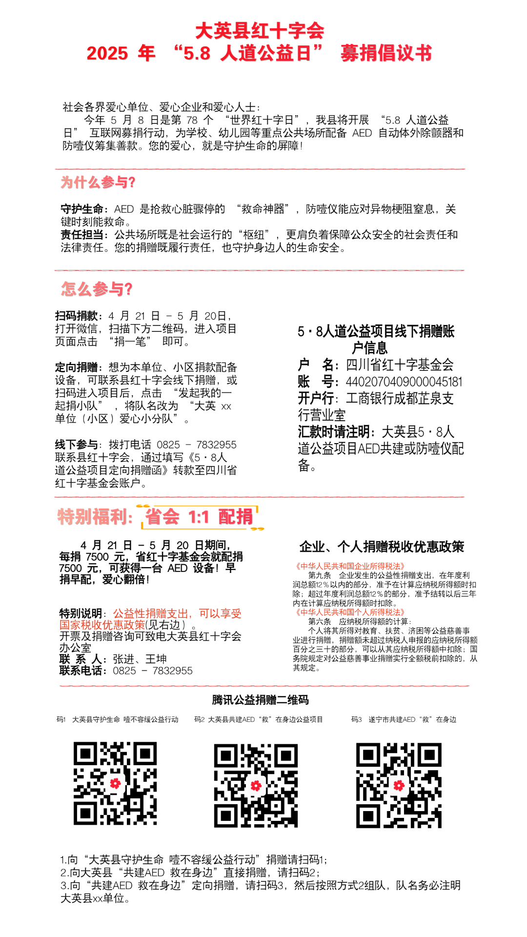 大英县红十字会2025 年 “5.8 人道公益日” 募捐倡议书