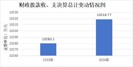 2024年度财政拨款收、支总计均为10318.77万元。与2023年度相比,财政拨款收、支总计各增加38.67万元,增长3.8%。主要变动原因是财政拨款收、支中项目支出增加。