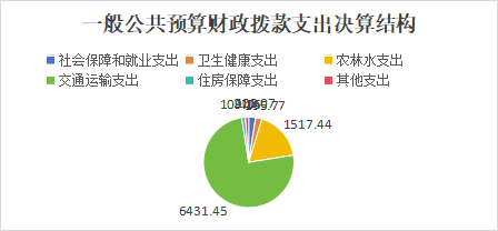 2024年度一般公共预算财政拨款支出8564.87万元,主要用于以下方面:社会保障和就业支出211.07万元,占2.46%;卫生健康支出195.77万元,占2.29%;农林水支出1517.44万元,占17.72%;交通运输支出6431.45万元,占75.09%;住房保障支出109.16万元,占1.27%;其他支出100万元,占1.17%。