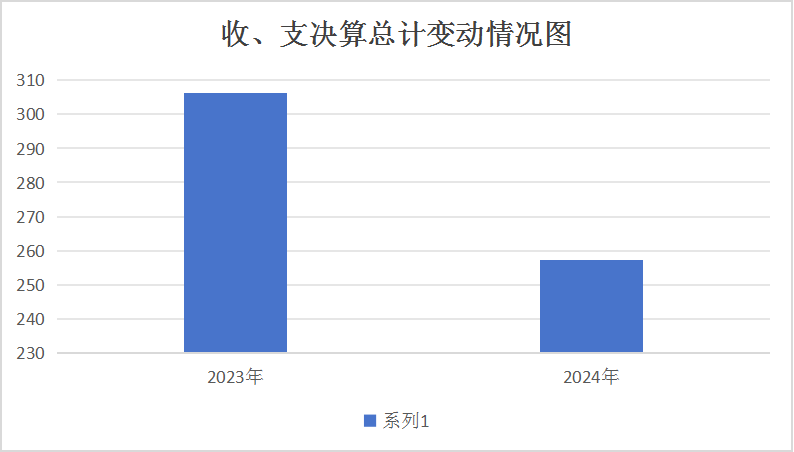 2024年度收、支总计均为257.19万元。与2023年度相比,收、支总计各减少49.09万元,下降16.02%。主要变动原因是2023年度因单位维护维修造成了一定的费用开支,2024年度不存在此项费用。