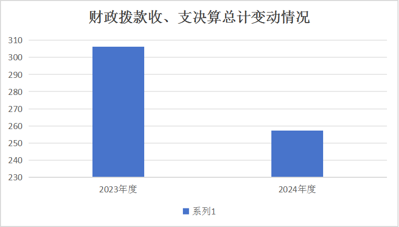 2024年度财政拨款收、支总计均为257.19万元。与2023年度相比,财政拨款收、支总计各减少49.09万元,下降16.02%。主要变动原因是2023年度因单位维护维修造成了一定的费用开支,2024年度不存在此项费用。