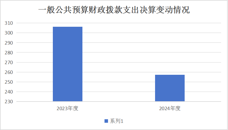 2024年度一般公共预算财政拨款支出257.19万元,占本年支出合计的100%。与2023年度相比,一般公共预算财政拨款支出减少49.09万元,下降16.02%。主要变动原因是2023年度因单位维护维修造成了一定的费用开支,2024年度不存在此项费用。