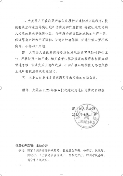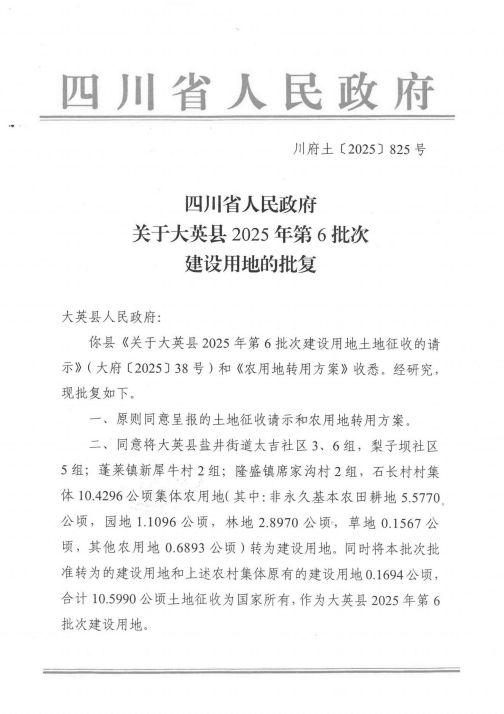 附件:1.四川省人民政府关于大英县2025年第6批次建设用地的批复(川府土〔2025〕825号)