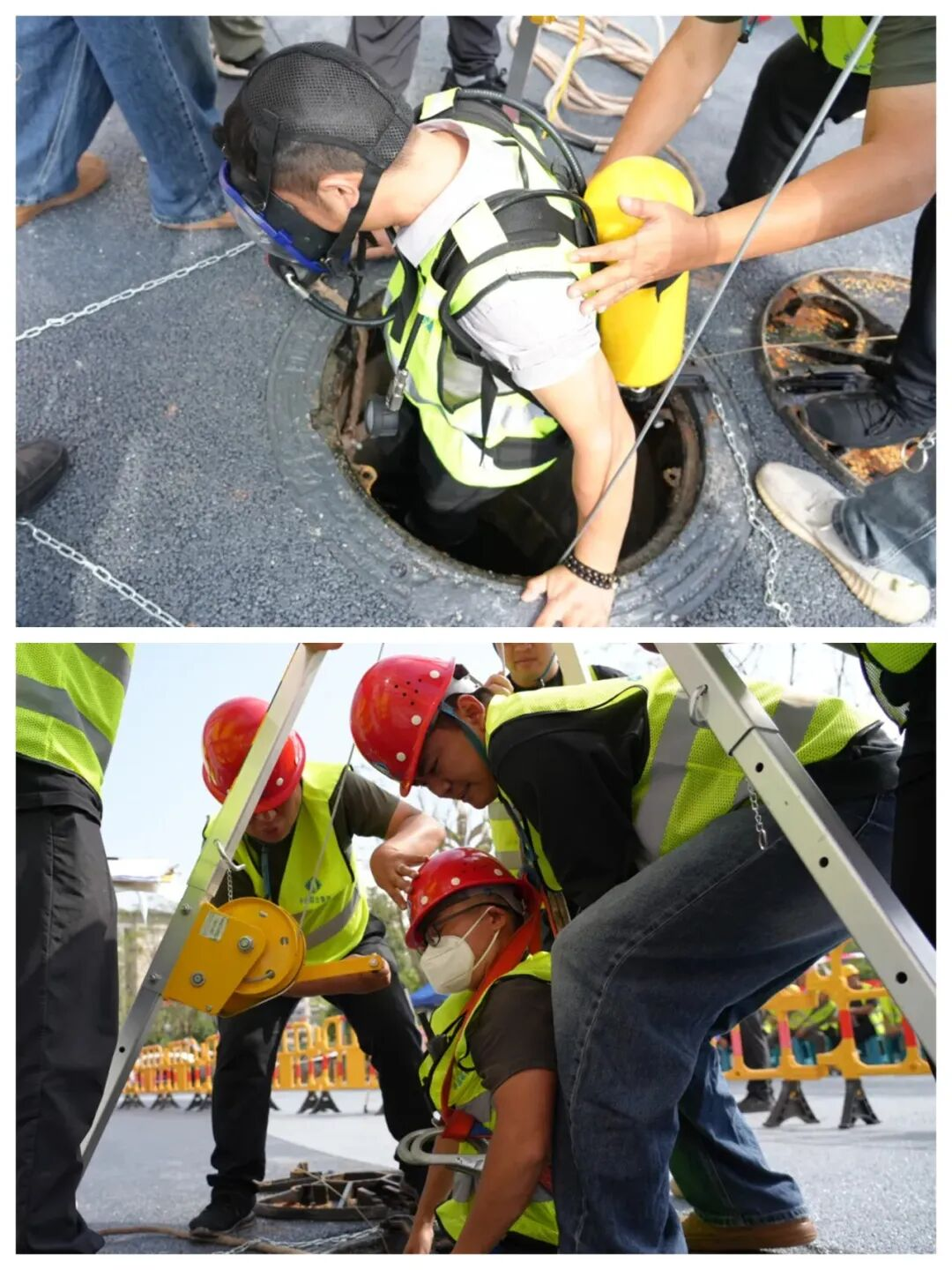 此次演练以“解救被困人员+现场模拟演示伤员救护知识”为核心科目,采用模拟现场演练形式,还原有限空间作业中有害气体中毒窒息事故场景。