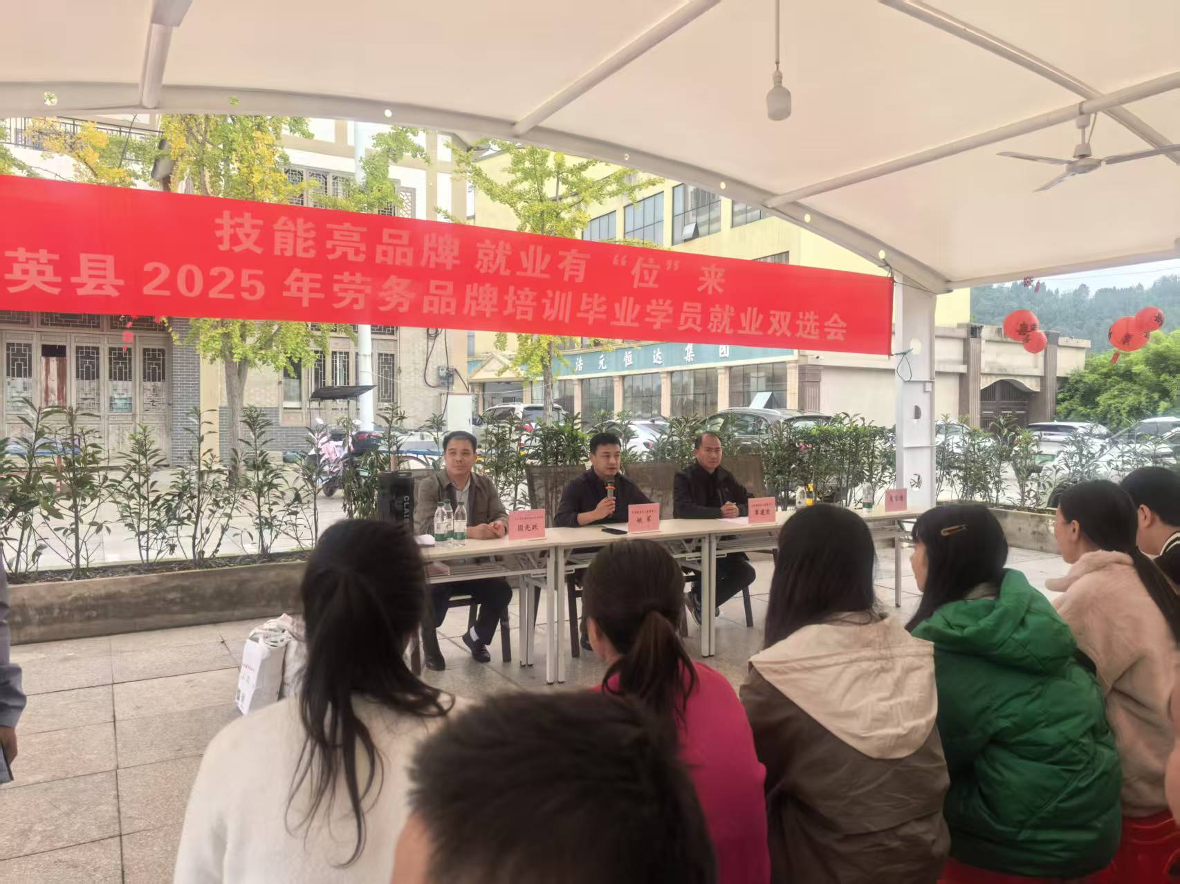 为切实提升劳务品牌培训实效,精准推动大英县高质量充分就业,满足企业技能型人才需求,进一步扩大“英妹子”劳务品牌影响力,10月27日,由县农民工服务中心主办、大英县成才职业技术培训学校承办的以“技能亮品牌,就业有‘位’来”为主题的大英县2025年劳务品牌培训毕业学员就业“双选会”在白鹤坡成功举办。本次活动共吸引遂宁市明星康年大酒店、谭府酒楼、南港美食城等9家优质餐饮企业参与,提供就业岗位80余个,并收集发放县内工业企业用工需求岗位表,90余名毕业学员踊跃参会,现场达成就业意向20余人,实现了“培训即赋能,结业即就业”的积极效果。