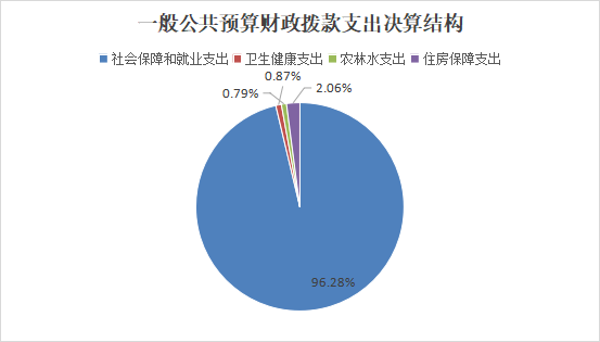 2024年度一般公共预算财政拨款支出5727.05万元,主要用于以下方面:社会保障和就业支出5514.00万元,占96.28%;卫生健康支出49.95万元,占0.87%;农林水支出44.98万元,占0.79%;住房保障支出118.12万元,占2.06%。