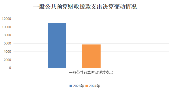 2024年度一般公共预算财政拨款支出5727.05万元,占本年支出合计的82.98%。与2023年度相比,一般公共预算财政拨款支出减少5163.49万元,下降47.41%。主要变动原因是部分社保资金(代缴社会保险费、生活补助等)项目在决算报表中由县级财政部门代为列支。