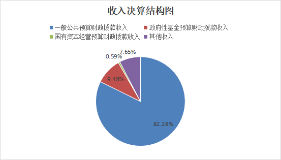 2024年度本年收入合计6960.66万元,其中:一般公共预算财政拨款收入5727.05万元,占82.28%;政府性基金预算财政拨款收入660万元,占9.48%;国有资本经营预算财政拨款收入41万元,占0.59%;其他收入532.61万元,占7.65%。