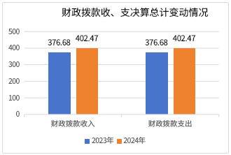 2024年度财政拨款收、支总计均为402.47万元。与2023年度相比,财政拨款收、支总计各增加25.79万元,增长6.85%。主要变动原因是项目经费增加。
